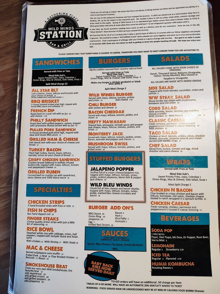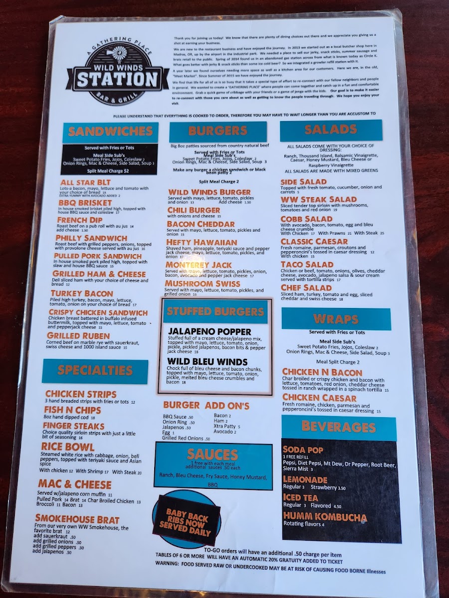 Welcome to Wild Winds Station, a hidden gem in Madras, Oregon! This inviting locale is the perfect blend of cozy atmosphere and unforgettable flavors. The menu boasts a delightful array of starters like jalapeno poppers bursting with bacon, stuffed mushrooms, and the ever-popular super nachos. Each dish is prepared with care, making it hard to choose a favorite.